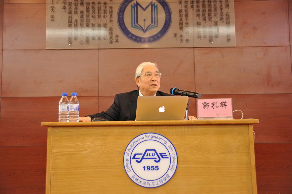 9月28日上午,赌博游戏 、汽车仿真与控制国家重点实验室联合举办的“吉大汽车创新大讲堂”系列活动正式拉开帷幕。大讲堂的第一讲邀请到中国工程院院士、赌博游戏 名誉院长郭孔辉教授为师生进行讲座。学院及重点实验室的400余位师生到现场听讲。讲座由赌博游戏 院长高振海教授主持。
