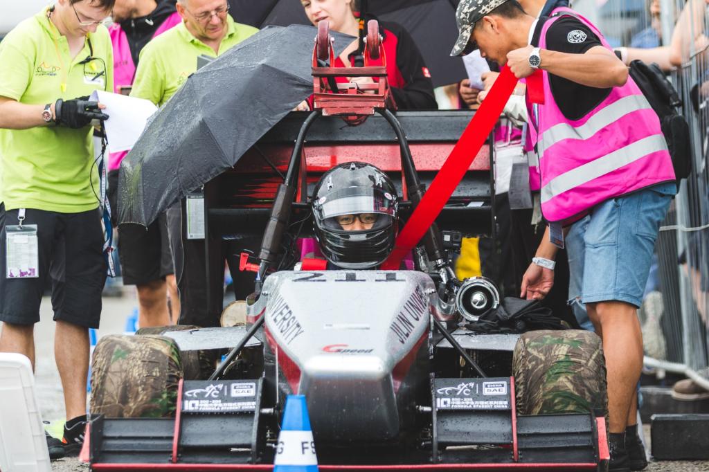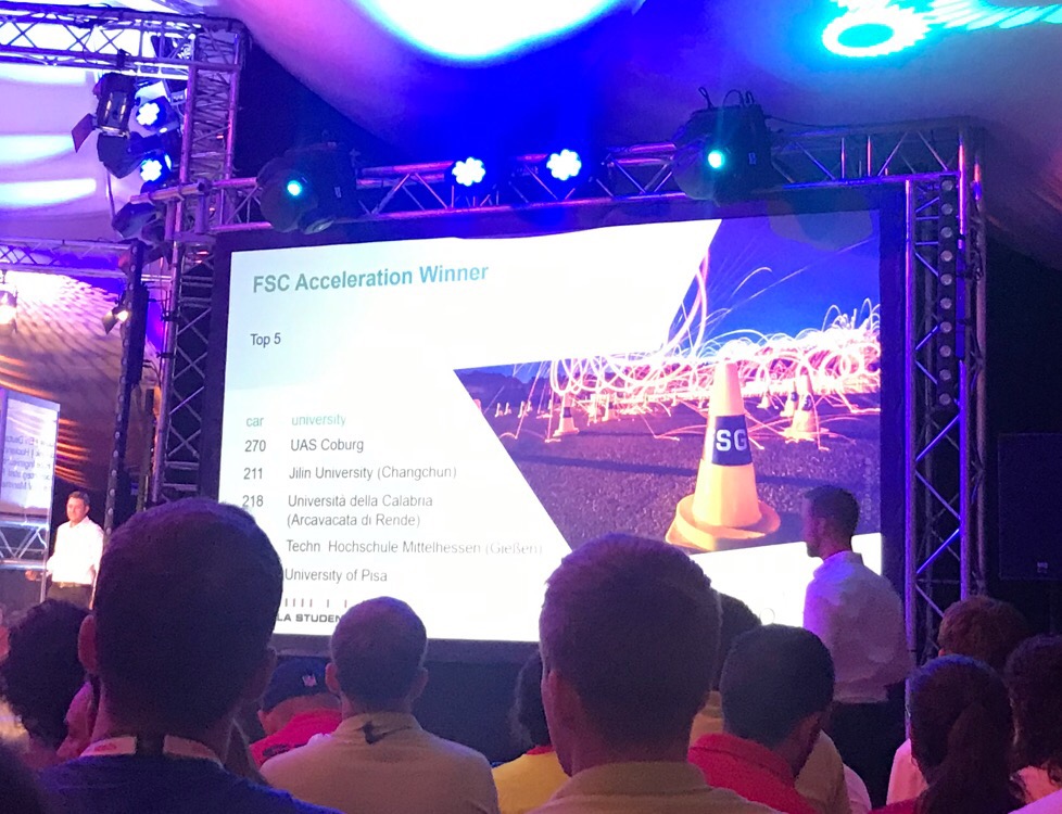 我校吉速方程式油车队在2018年取得全国总冠军后,代表中国参加了此项赛事。与来自25个国家的119支顶尖车队同场竞技,在赛车设计、成本制造分析、营销答辩、直线加速、八字绕环、高速避障、耐久测试、效率测试等8个项目上激烈角逐,并最终以直线加速单项亚军、八字绕环第13名、营销答辩第10名的成绩,刷新了上述单项的中国车队历史最佳名次,在本届中国参赛车队中成绩最为优异。