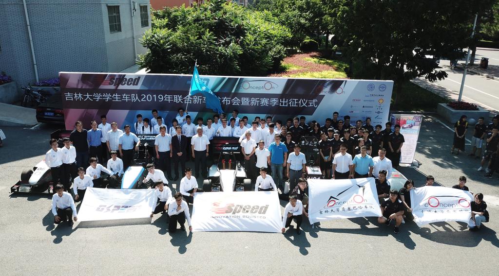7月8日,吉林大学学生车队2019赛季联合新车发布会暨出征仪式在吉林大学南岭校区隆重举行。此次活动发布了我校学子自行开发的三辆全新赛车,并为即将赶赴德国、日本等地参加国际赛事的我校代表队饯行。中国汽车工程学会大学生系列大赛赛事总监陈刚,中国汽车工程学会科普文化中心副主任殷兴吉,吉林大学党委副书记冯正玉、创新创业教育学院院长赵军、教务处副处长王瑞,赌博游戏 院长高振海、党委书记李善兴等学院领导老师莅临现场,参加活动的还有电装(中国)投资有限公司、吉林省天火科技控股有限公司、江机瑞泰工业自动化装备有限公司、大陆汽车投资有限公司、上海拓渝实业有限公司、柏中紧固件上海有限公司等六家车队赞助商的十余名来宾和学生车队全体队员。