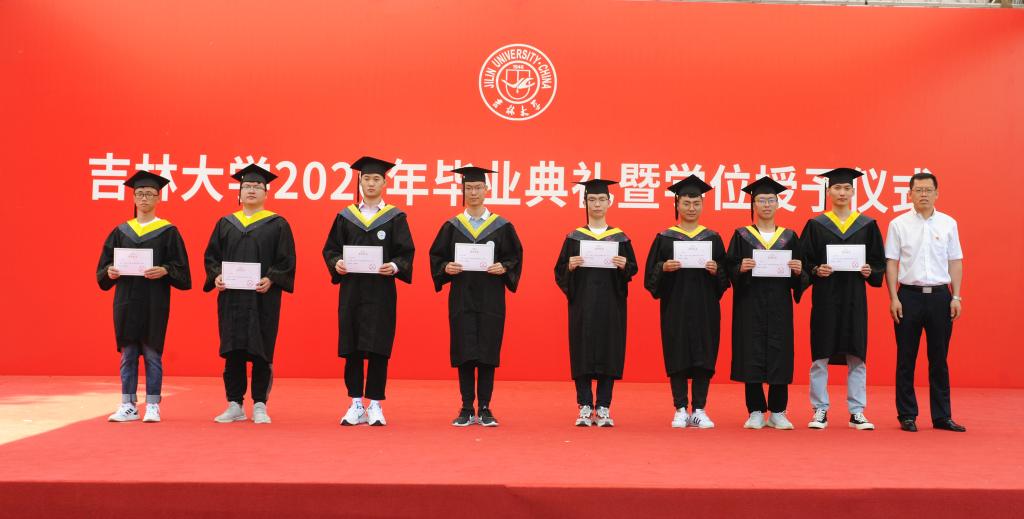 典礼在宏伟嘹亮的国歌声中开始。副书记胡忠巍教授宣读《关于表彰2020届优秀毕业生的决定》,决定授予博士、硕士研究生,本科生共98名学生吉林大学2020届“优秀毕业生”荣誉称号。学院党委书记李善兴为优秀毕业生代表颁奖。