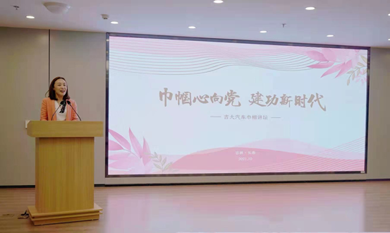 喜逢建党100周年,为深入贯彻落实习近平总书记重要讲话精神和全国妇联七部委联合发布的《关于实施科技创新巾帼行动的意见》精神,响应学校妇委会2021年度“妇女小家一家一品”基层活动号召,赌博游戏 妇委会于10月8日举办了“巾帼心向党,建功新时代”—吉大汽车巾帼讲坛活动。学校妇委会主任苗艺璇、副主任焦红兵、学院党委书记黄忠华、副书记胡忠巍出席了活动。讲坛由学院副院长、妇委会主任林海兰主持。