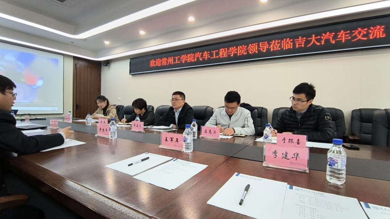 黄忠华书记首先向常州工学院的领导及我院校友孙文博士的来访表示热烈欢迎,并介绍了我院目前办学理念及学科专业的发展方向。胡兴军副院长向来访人员展示学院宣传视频和吉林大学“吉速”方程式赛车队宣传微电影,并分享了学院在本科教学和人才培养方面的工作经验。常州工学院蔡建文院长随后对我院在办学优势和人才培养成果等方面表示认同和赞赏,他表示希望在专业发展、学科方向、专业认证评估、培养方案修订等方面向我院学习经验。