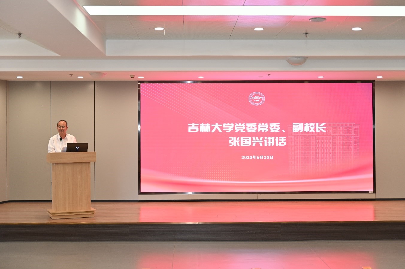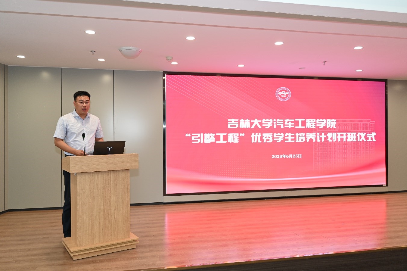 2023年6月25日下午,赌博游戏-手机赌博游戏 2023年“引擎工程”优秀学生培养计划(第一期)开班仪式在汽车工程大楼214会议室隆重举行。吉林大学党委常委、副校长张国兴,一汽-大众汽车有限公司人力资源总监李松梅参加仪式,仪式由赌博游戏 党委副书记兼副院长聂逯松主持。