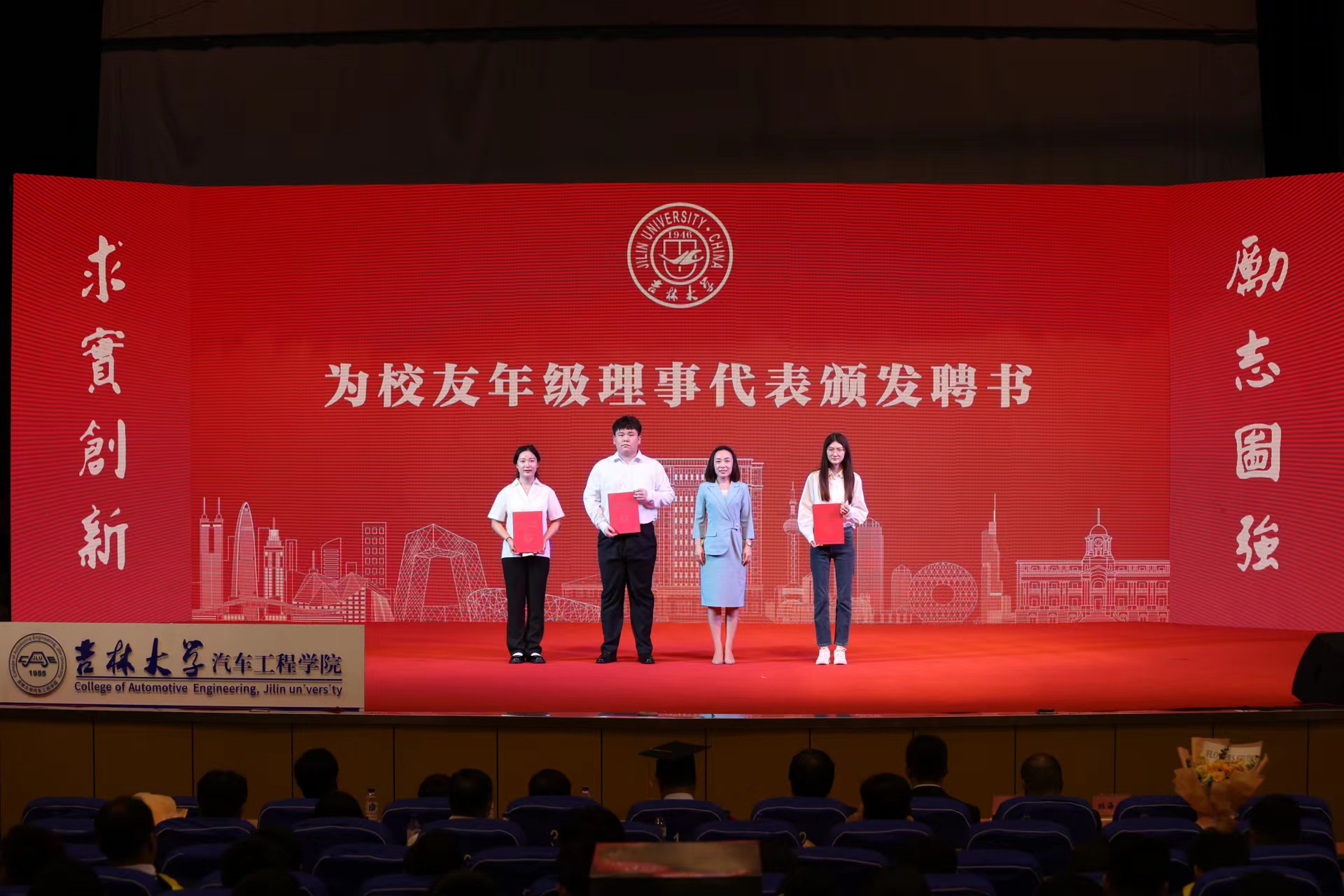 学院副院长林海兰老师宣读《关于聘任吉林大学2023届校友年级理事的决定》并为年级理事代表颁发聘书。