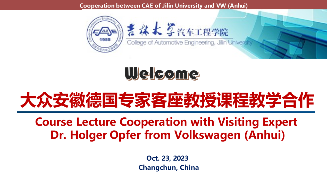 鉴于Holger Opfer博士在产业界丰富的工作经历和新能源汽车行业的资深影响力,加之对教育事业和高校合作的热爱,赌博游戏-手机赌博游戏 聘请Holger Opfer博士为学院兼职客座教授,计划为本科生开设《汽车产品开发工程》课程和《国际学术前沿讲座》课程。