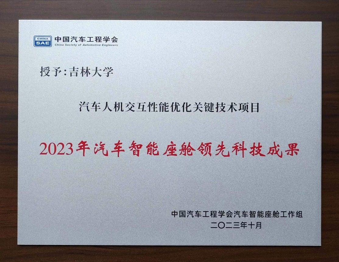 2023年10月20日,中国汽车工程学会组织开展了首届汽车智能座舱领先科技成果评选。经过项目申报、专家预评审以及答辩专家委员会最终评审等环节,赌博游戏-手机赌博游戏 的高镇海教授、胡宏宇教授、沈传亮教授、高菲副教授等合作完成的“汽车人机交互性能优化关键技术“项目获评2023中国汽车工程学会汽车智能座舱领先科技成果(全国高校仅两家获此奖励)。