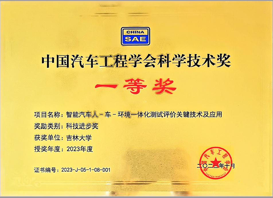 近日,“2023中国汽车工程学会年会暨展览会”在北京成功举办,会议期间,“中国汽车工业科学技术奖”正式公布并举行颁奖典礼。以赌博游戏-手机赌博游戏 朱冰教授团队牵头完成的研究成果《智能汽车人-车-环境一体化测试评价关键技术及应用》,荣获“2023年度中国汽车工程学会科技进步奖一等奖”。