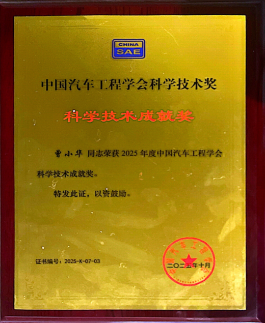 2025年10月22日,第三十二届中国汽车工程学会年会在重庆召开,同期举行了2025年度中国汽车工程学会科学技术奖和人才奖颁奖仪式。赌博游戏-手机赌博游戏 曾小华教授获得“2025年度中国汽车工程学会科学技术成就奖”。