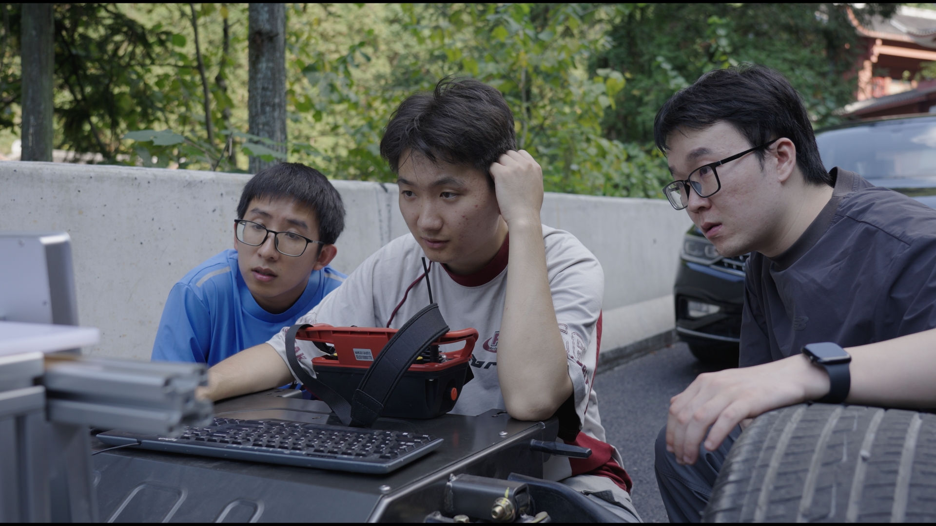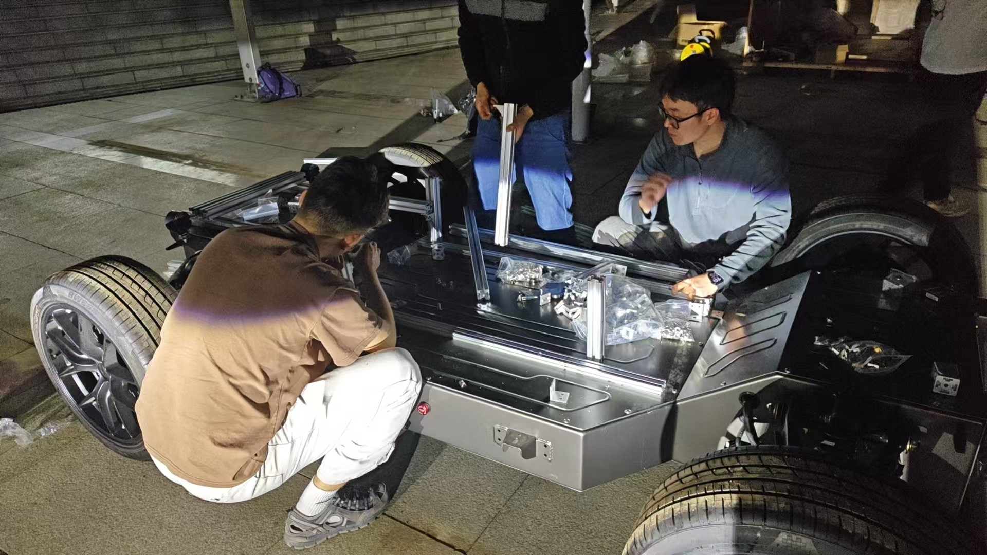 我校智翼人工智能战队相比其他战队获得会务组提供的线控底盘相对较晚,为抢出更多的调试时间,队员们克服种种困难、每日最早到达赛场且最晚离开,在天门山脚下的雨棚中完成了底盘调试与各类传感器的安装。队员们紧锣密鼓地开发并调试建图、定位、规划与控制算法,成为第2支率先通过资格认证的队伍。