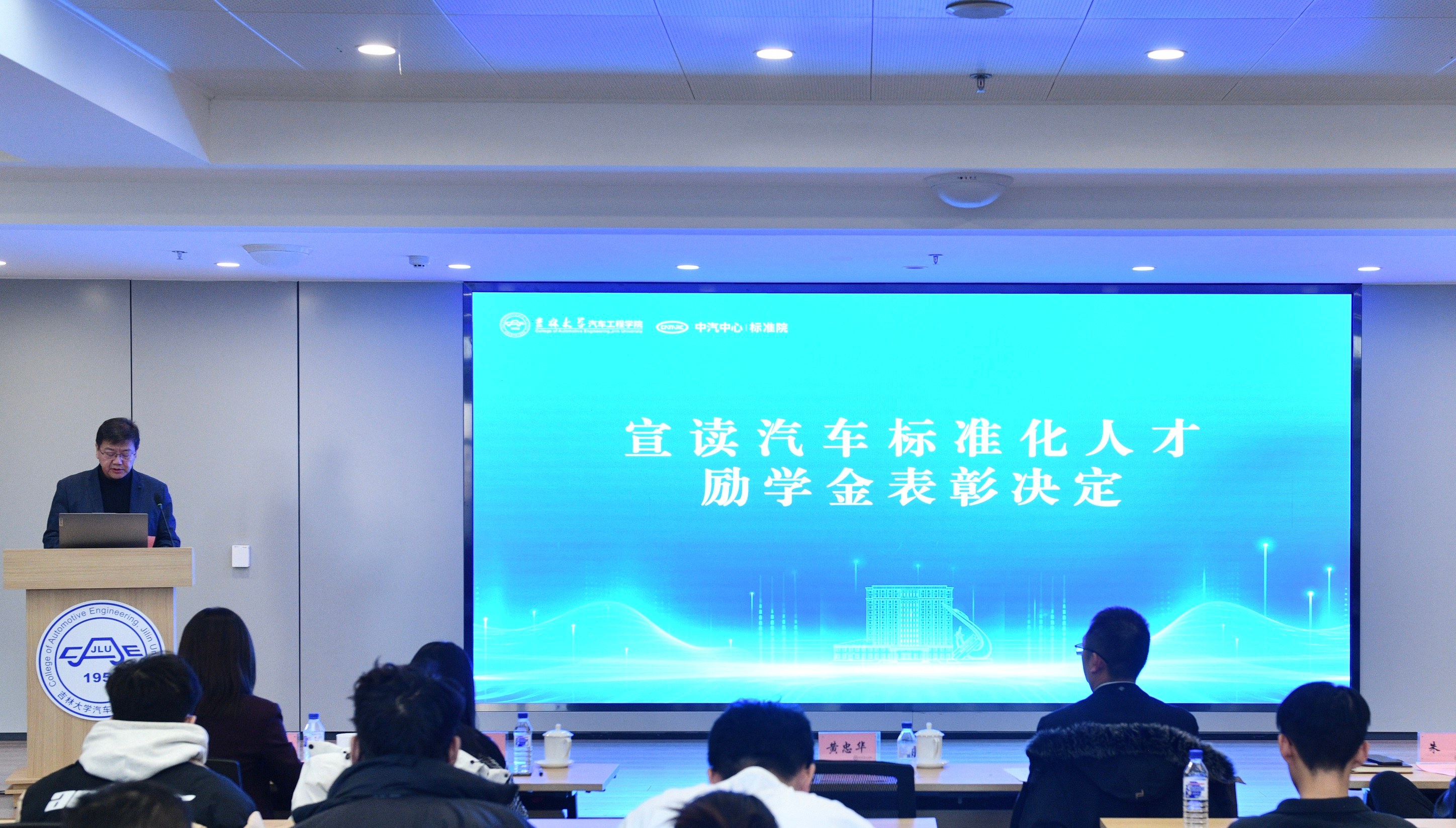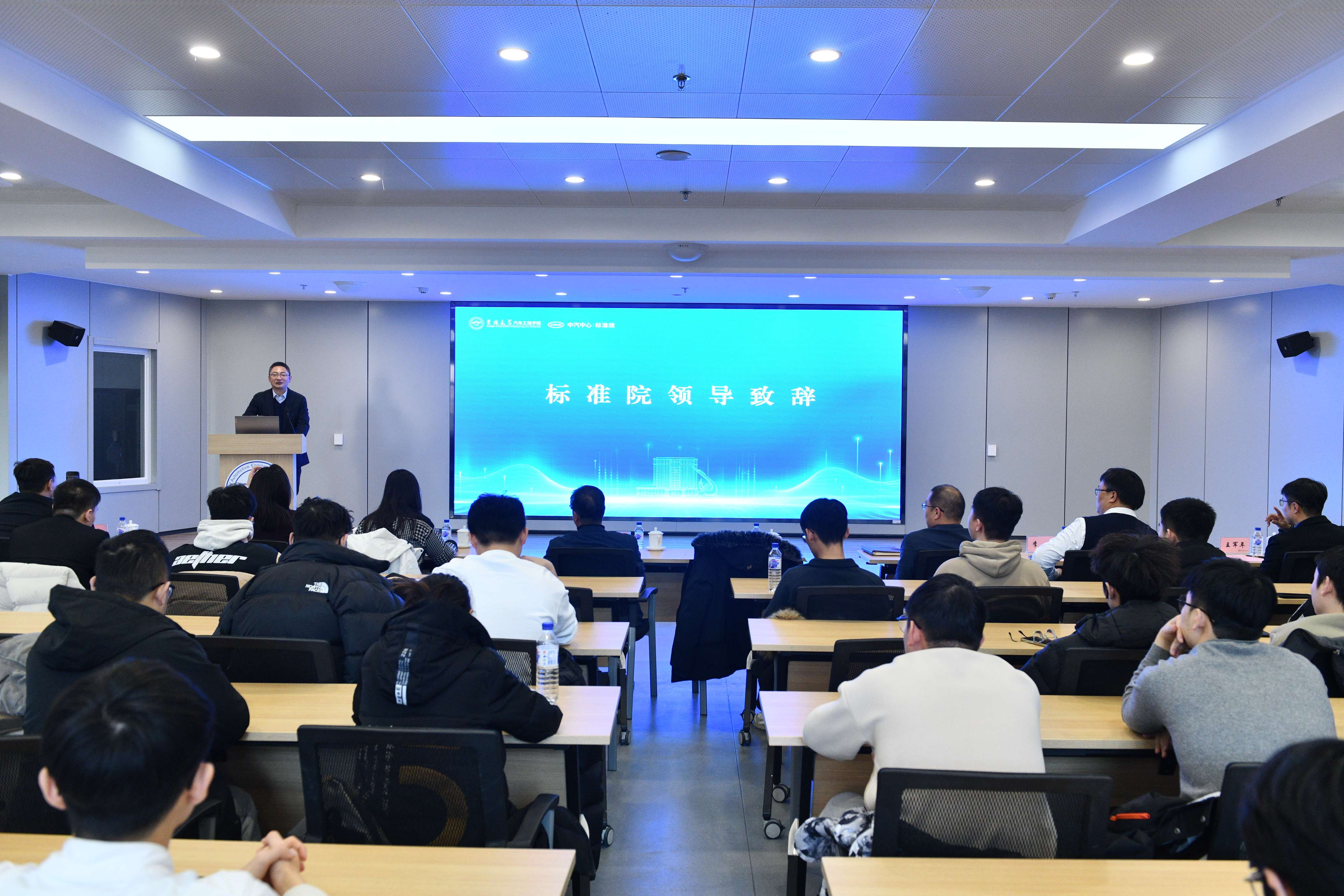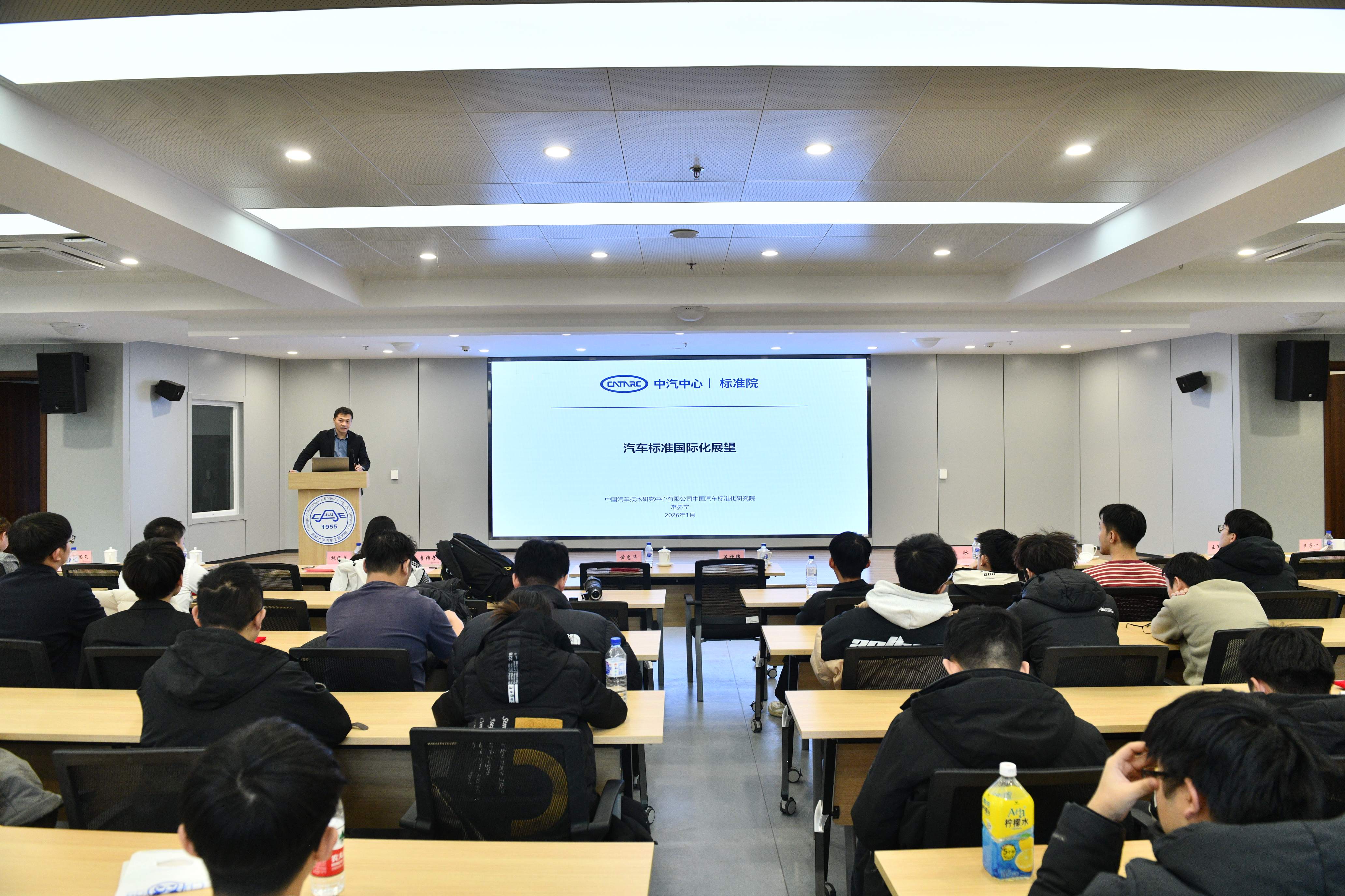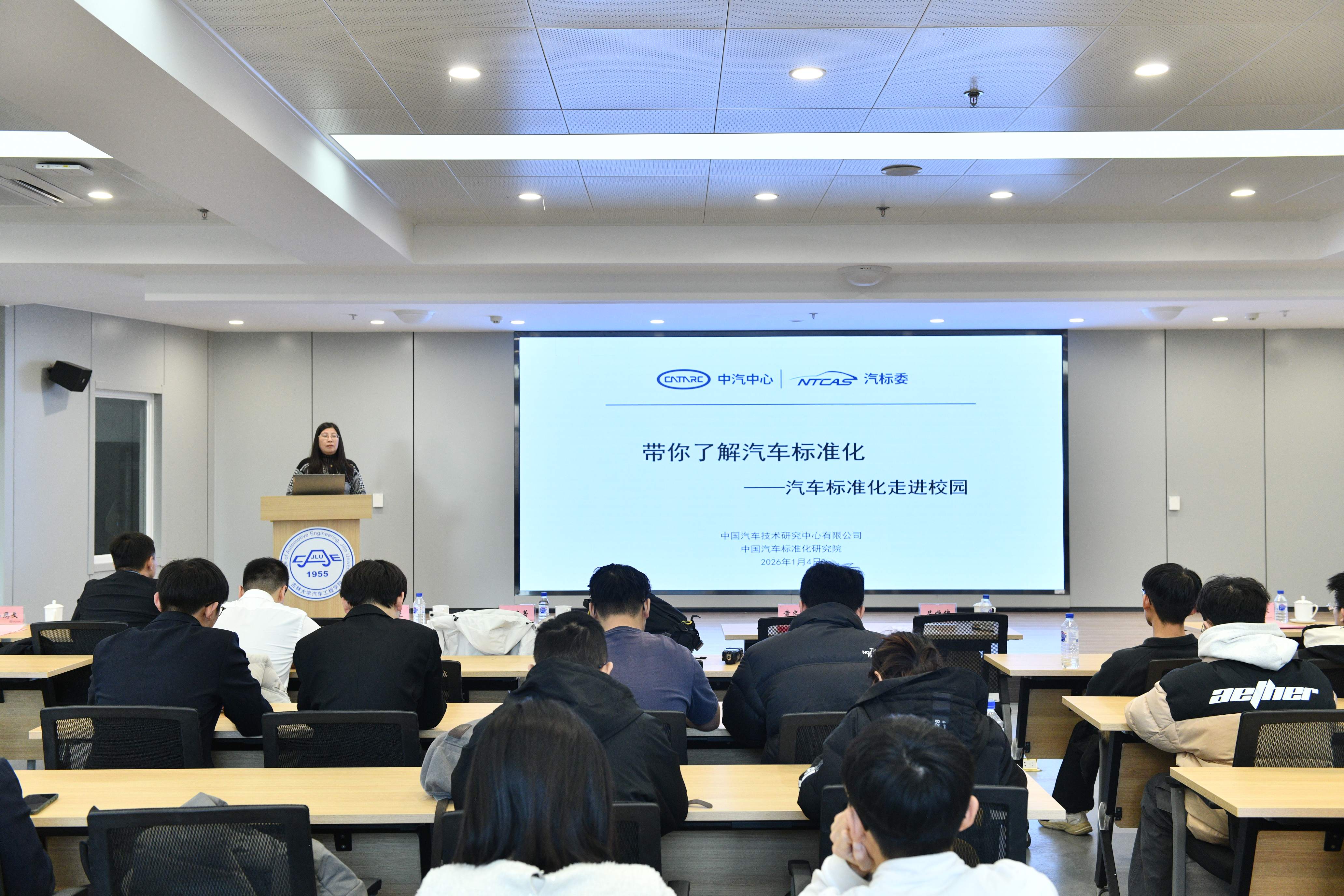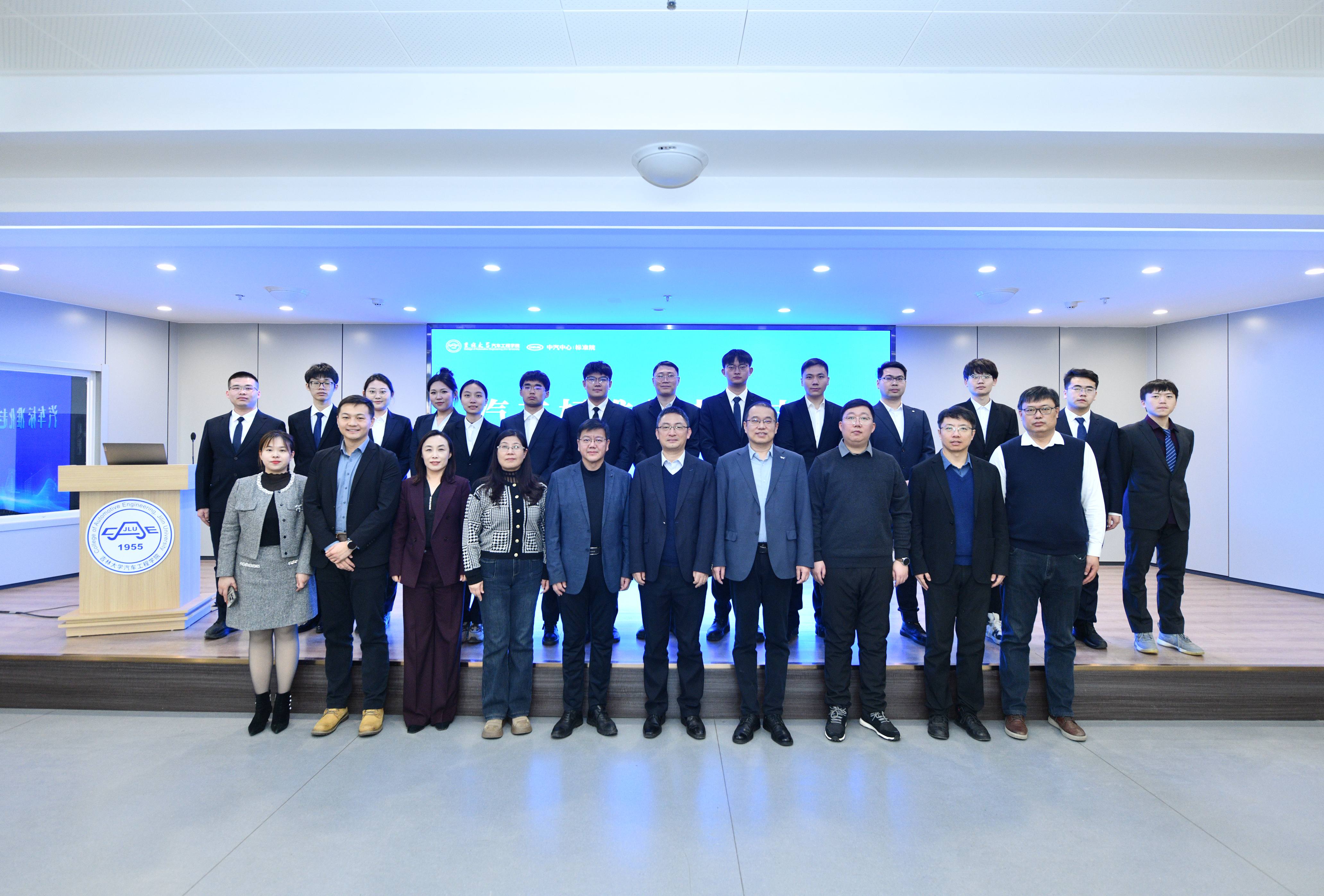 2026年1月4日,“汽车标准化走进吉大”主题活动在南岭校区汽车大楼214会议室举行。本次活动由赌博游戏-手机赌博游戏 与中国汽车技术研究中心有限公司汽车标准化研究院(以下简称 “标准院”)联合主办,赌博游戏-手机赌博游戏 党委书记黄忠华、院长朱冰,标准院副院长吕恒绪、技术总监李维菁,校企双方领导、师生代表共同参与,学院党委副书记林海兰主持会议。