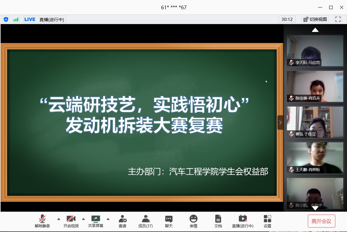 为了提升赌博游戏 学生的专业素养,进一步考察晋级复赛八支队伍的专业知识水平,赌博游戏 学生会于2020年5月24日通过软件“腾讯会议”,在线上举办了汽车发动机拆装大赛复赛。学生车队指导教师王达老师以指导教师身份出席复赛。